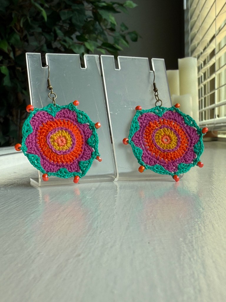 My mind is overflowing with ideas. Now that I am home, it is time to rest, sketch, and play with stitch patterns and see how the next collection evolves. I am new to this artistic process. I burn out if I try to make multiples of the same or similar things. My style and artistic voice are in their infancy. This is going to be a wild and fun ride. Grab a hook and thread and join me as I explore and make art.